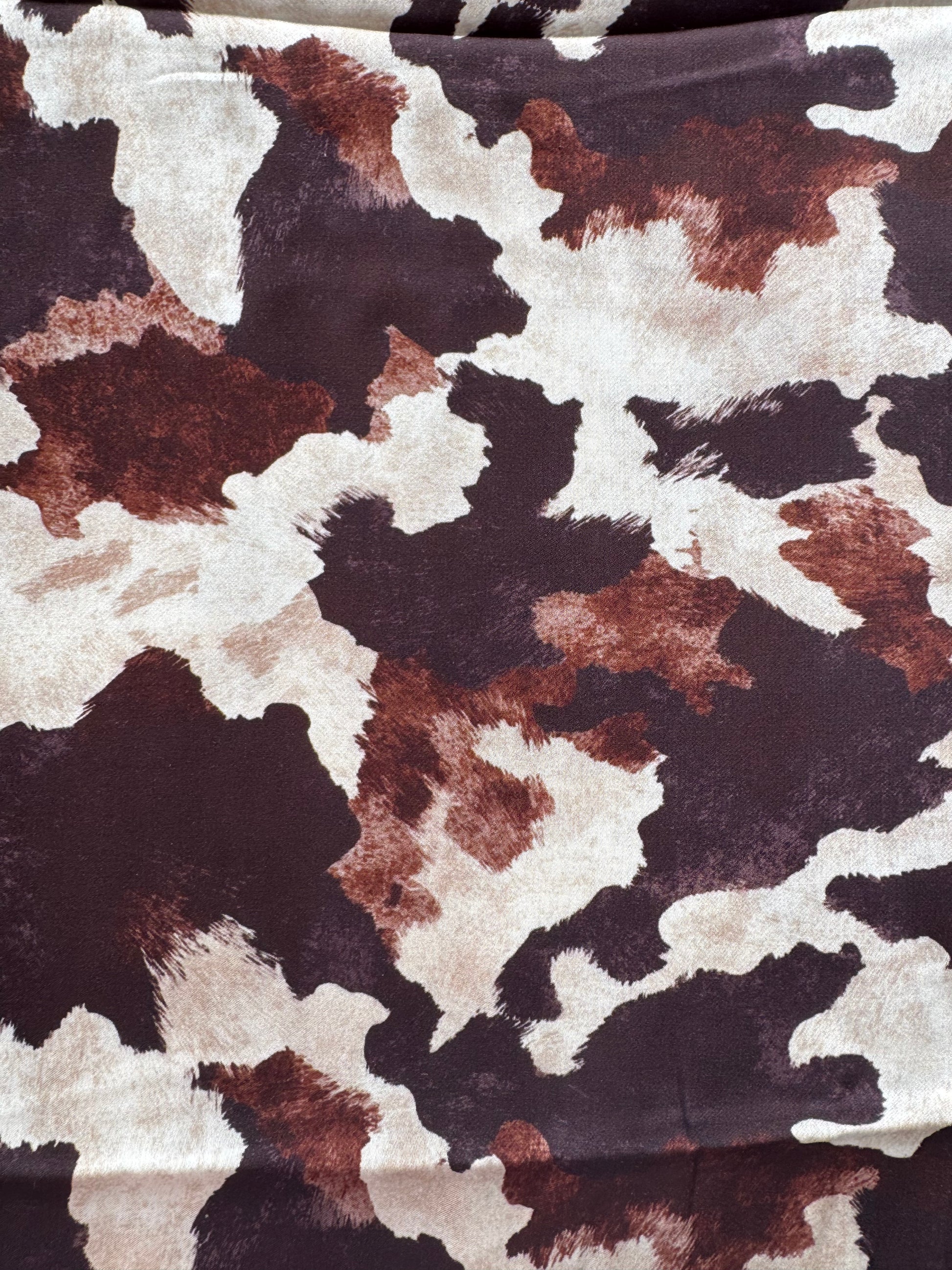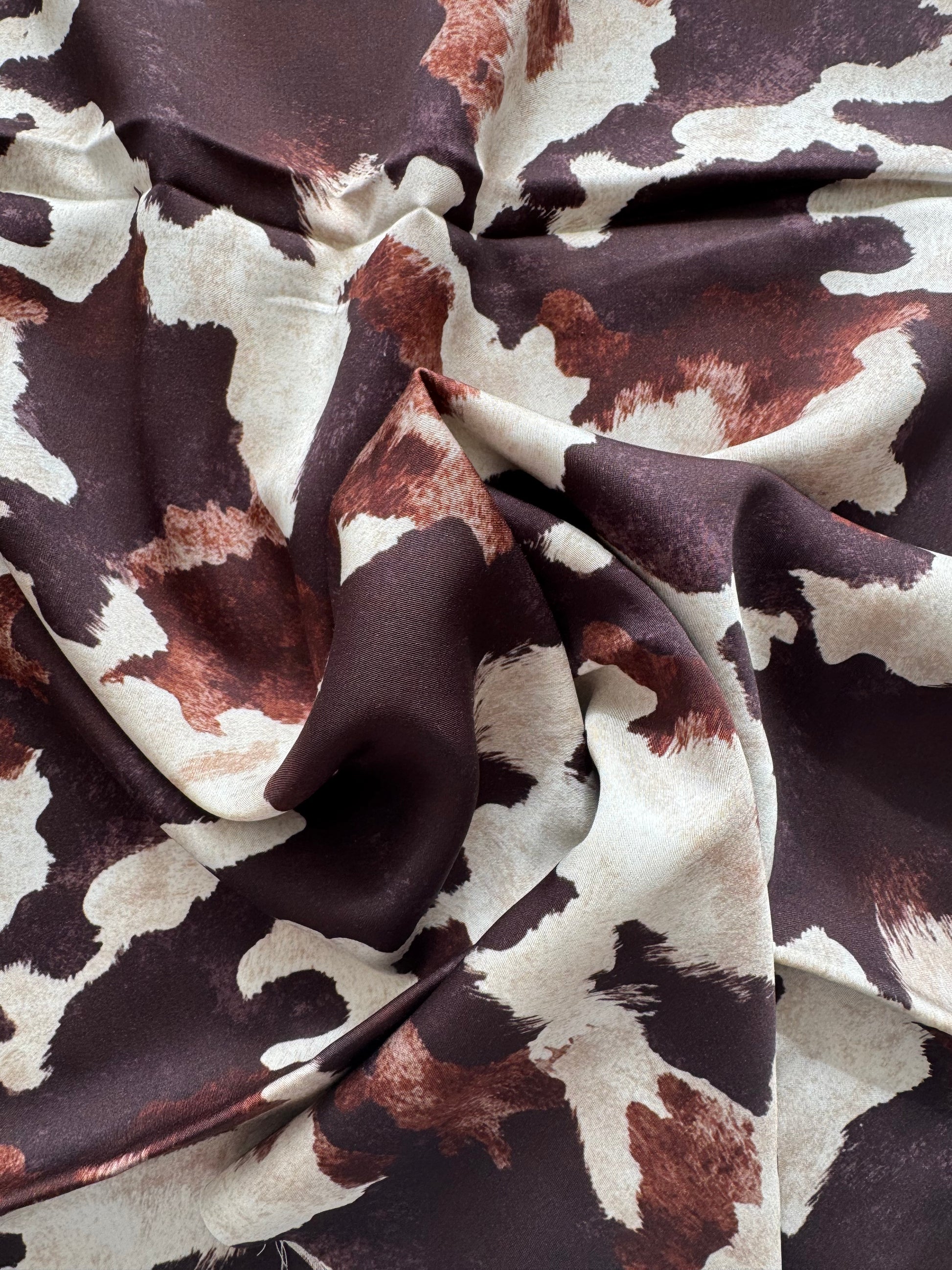 A brilliantly characterful and effortlessly cool Rayon Sateen fabric from the Little Johnny brand, featuring a bold and spirited cowtown print that brings a free-spirited western energy to any project. With a sumptuously smooth, lustrous finish and a beautifully fluid drape, this 100% Rayon Sateen is perfect for dresses, skirts, blouses, shirts, and any make that channels the laid-back confidence and rugged charm of wide open spaces and western style.