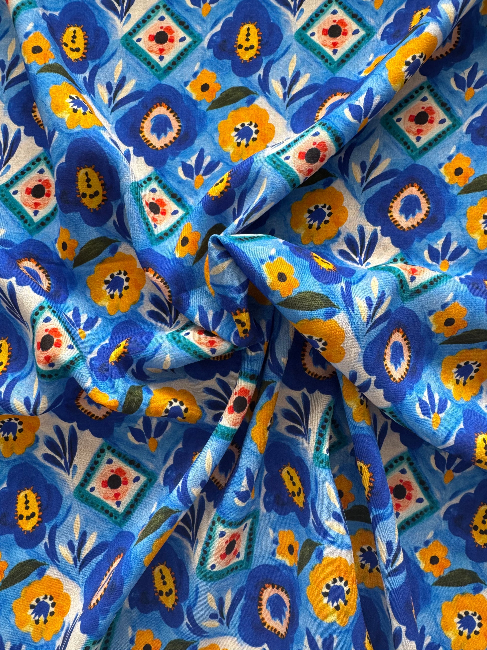 A beautifully sophisticated and design-led Viscose Lawn fabric from the Empee Studio range, featuring a stunning ceramic story check tile print that combines the geometric elegance of tilework with an artisan, hand-crafted quality. Incredibly lightweight, airy and soft against the skin, this Viscose Lawn is perfect for floaty summer dresses, blouses, wide-leg trousers and any make that brings together contemporary design sensibility with a love of artisanal craft.